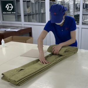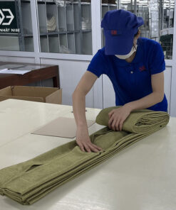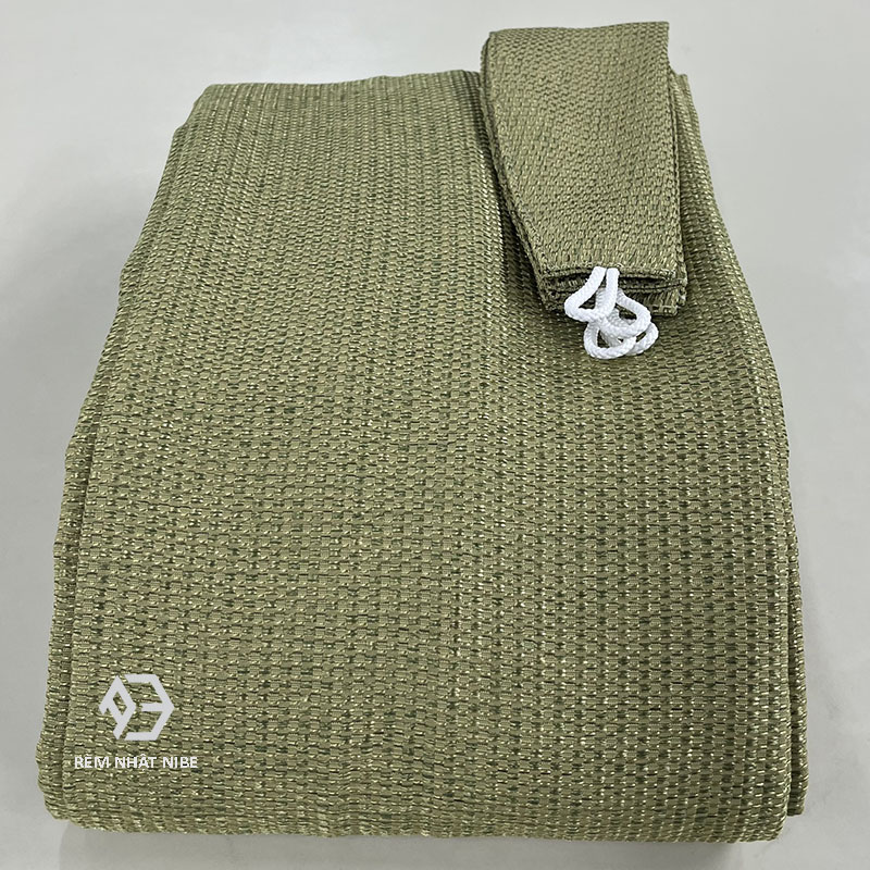 – Cấu trúc dệt này được lấy cảm hứng từ chiếu cói tatami với sợi màu xanh có chút bóng.